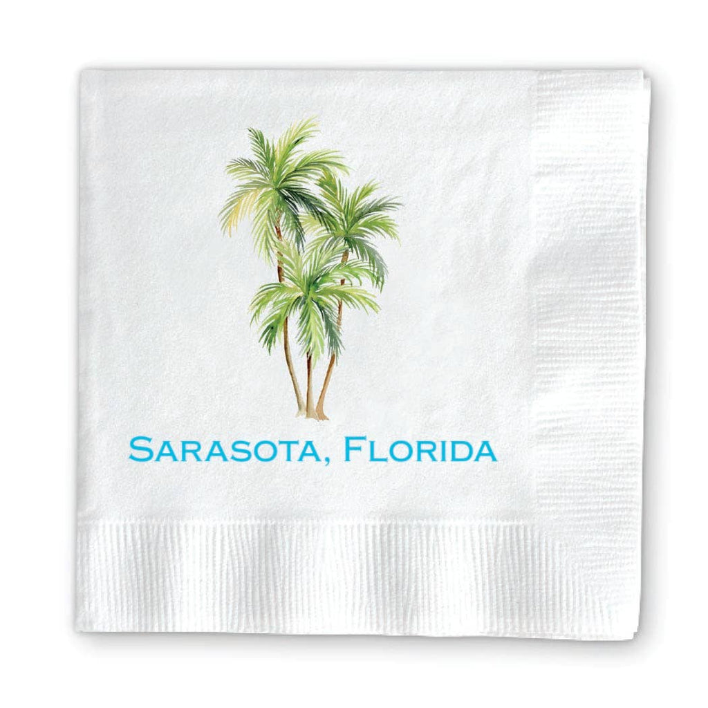 Palm Tree - 5X5 Cocktail Napkins. Each pack includes 20 napkins. Available with your custom text!