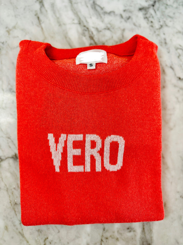 White on Coral VERO Sweater Sweatshirt