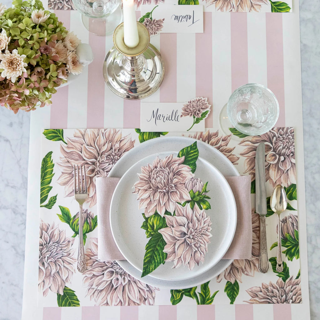 The Dahlia Table Accent provides a perfect pop of pink to spring tables and beyond. Try layering a few accents together to form a garland down the center of your table or a fun frame for your plate! Add another stylish layer to your table with table accents! These versatile pieces make wonderful place cards, look great under flatware, or used as decor for scatter and buntings.
