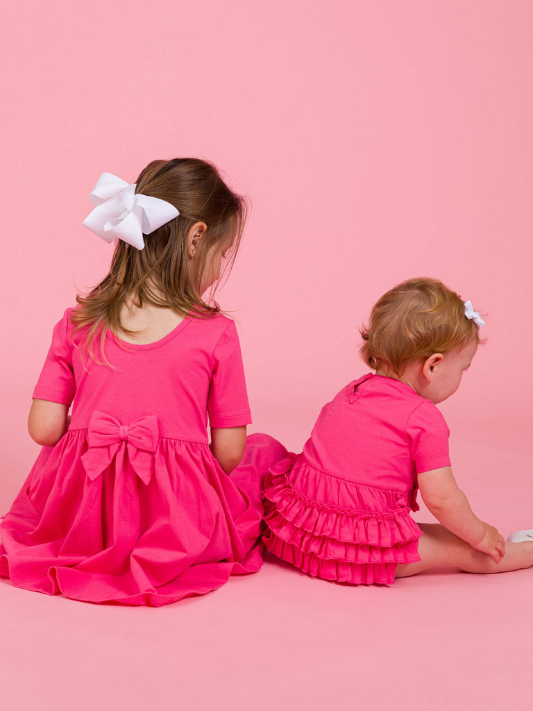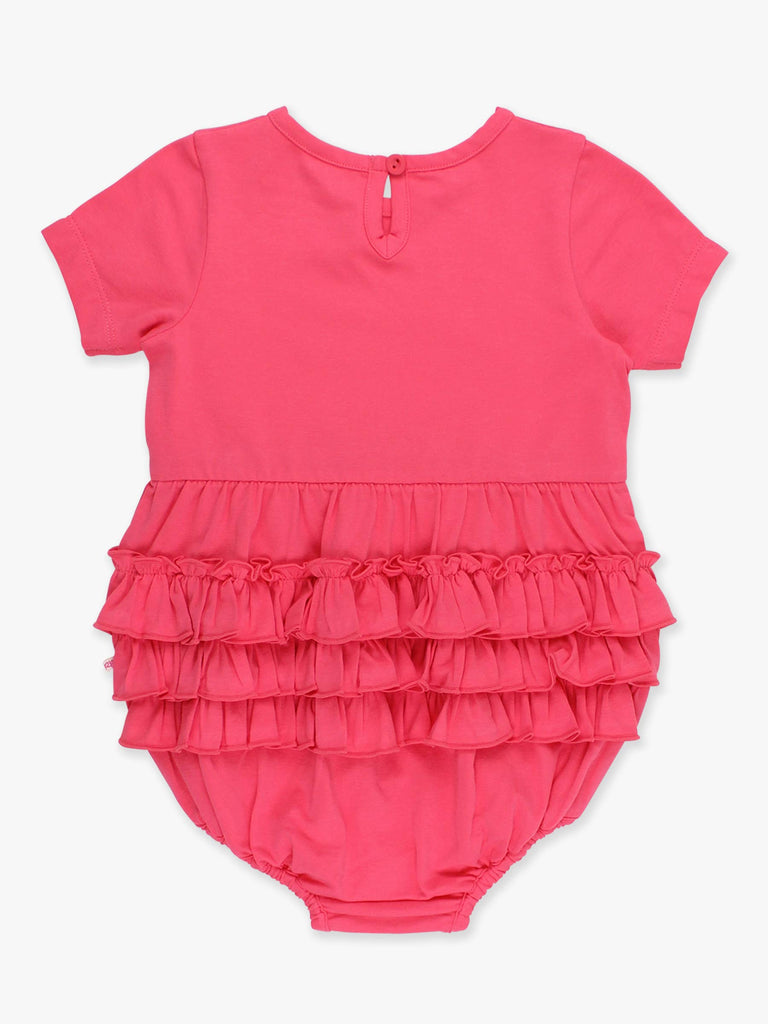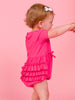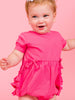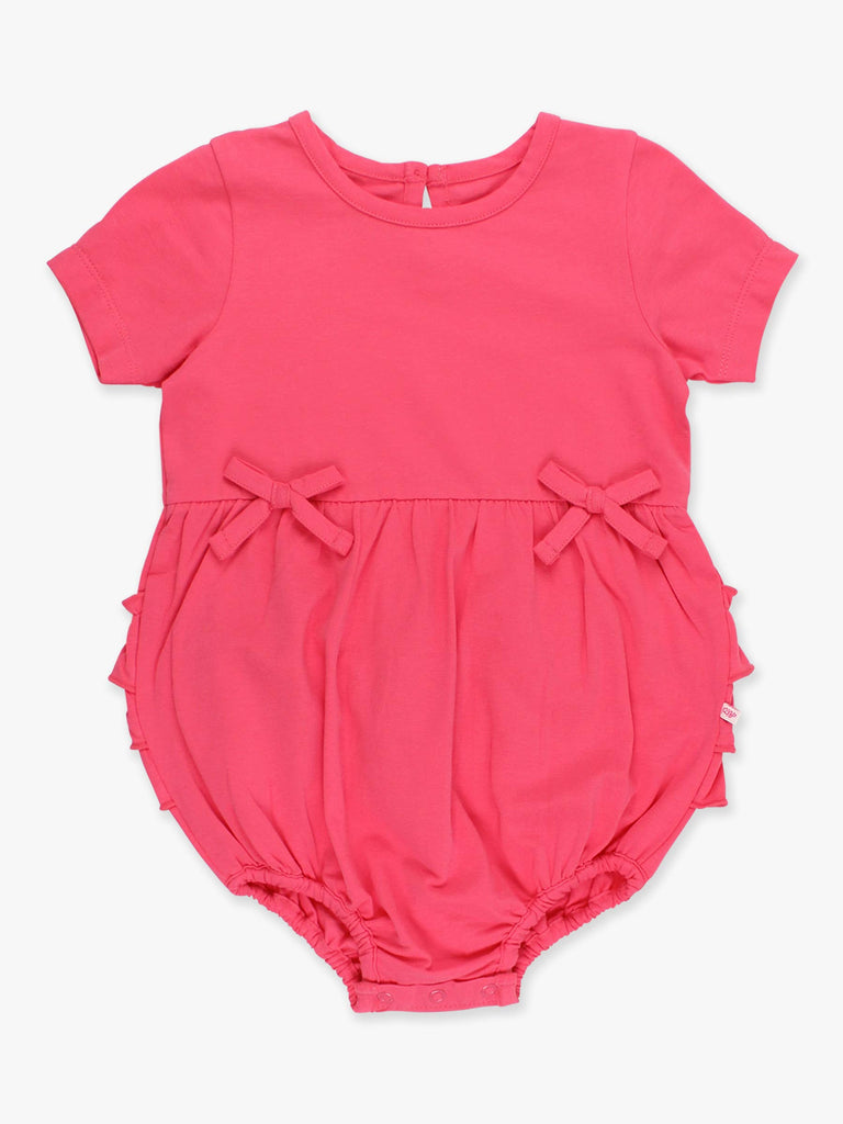 Baby Girls Hot Pink Knit Short Sleeve Bow Bubble Romper