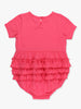 This sweet knit bubble romper features tiny bow details at the waist and layers of signature rear ruffles for added cuteness.