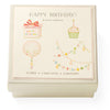 Our Birthday Present Gift Enclosure is printed and hand-glittered in Memphis, TN. Hand crafted artwork, full color ink and letterpress printed on natural white paper, hand-glittered, and paired with a vellum envelope. Book-folded enclosure card, blank on the inside.