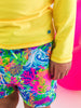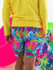 Boys Neon Ocean Coral Performance Hybrid Swim Trunks