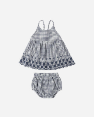 Featuring our ‘marine gingham’ print with beautiful eyelet embroidered detail. This summery blue gingham is perfect for your warm weather wardrobe.